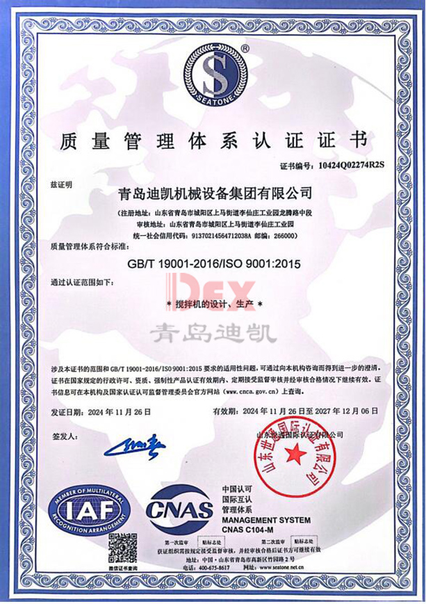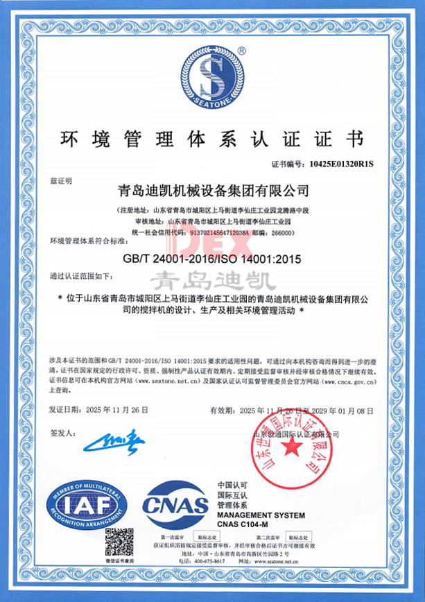 青島迪凱機械設備集團有限公司是一家集研發、生產、銷售、服務四位于一體的大型高端攪拌設備提供商,作為國家級高新技術企業與創新型示范企業,始終以 “做攪拌行業引領者” 為使命,通過構建立軸行星式攪拌機與雙臥軸攪拌機兩大研發生產基地,為全球客戶提供定制化的高品質攪拌解決方案。